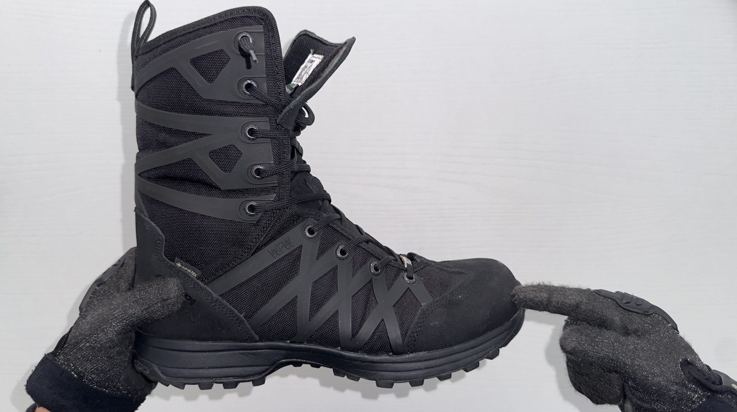 Construcción exterior: Gamuza repelente al agua y tela de alta tenacidad con Forro Gore-Tex® Performance Comfort Calzado.