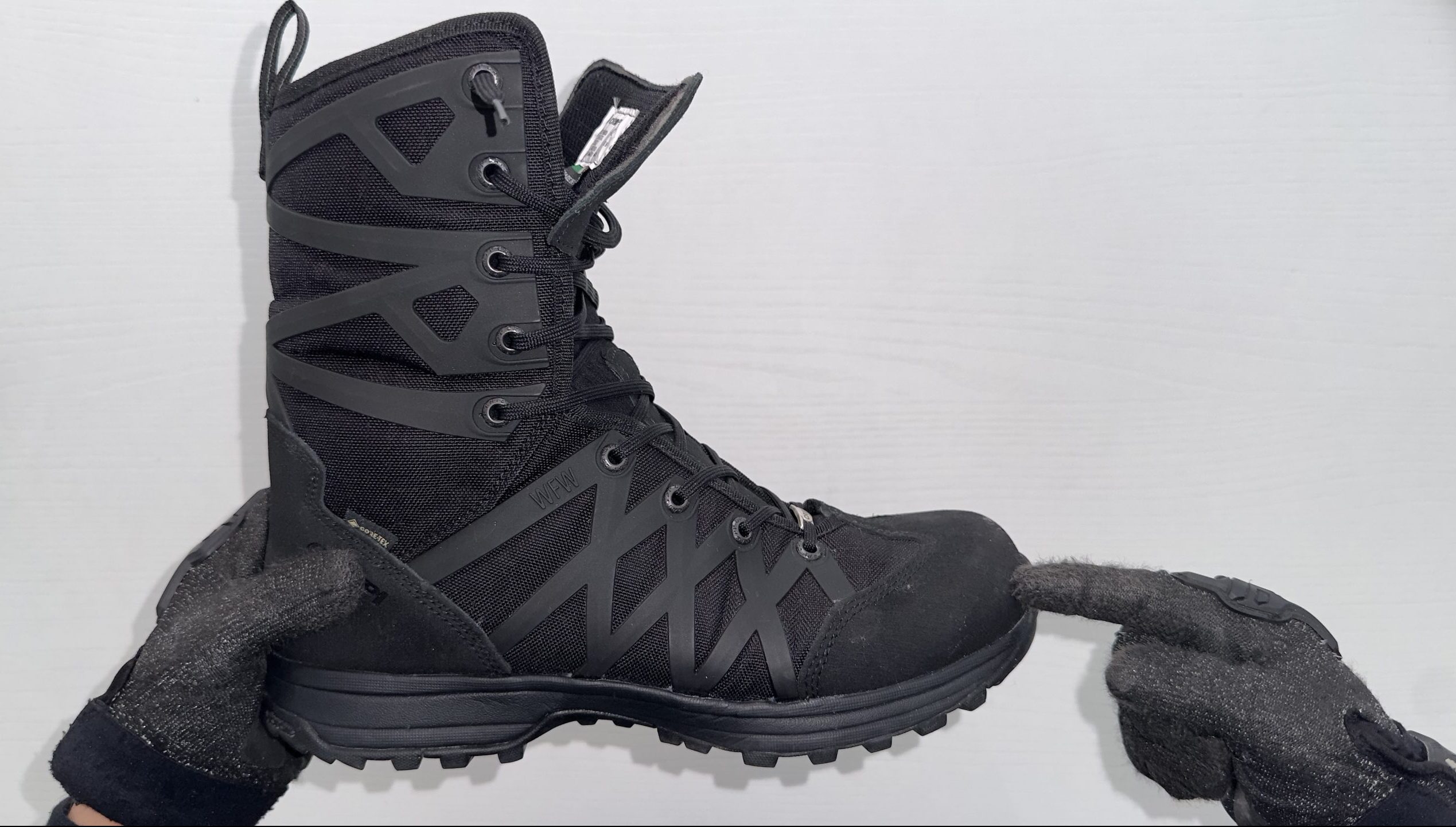 Construcción exterior: Gamuza repelente al agua y tela de alta tenacidad con Forro Gore-Tex® Performance Comfort Calzado.